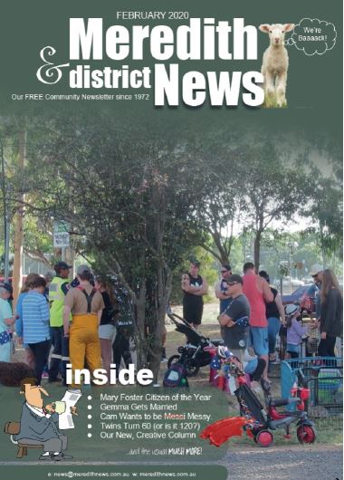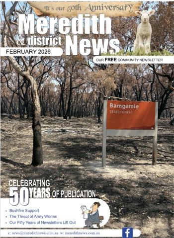 The Meredith and District News website welcomes you. Run by volunteers, we publish a free newsletter on the first Thursday of each month which circulates throughout Meredith, Elaine, Lethbridge and surrounding districts; an area that lies midway between the regional cities of Geelong and Ballarat, Victoria Australia.